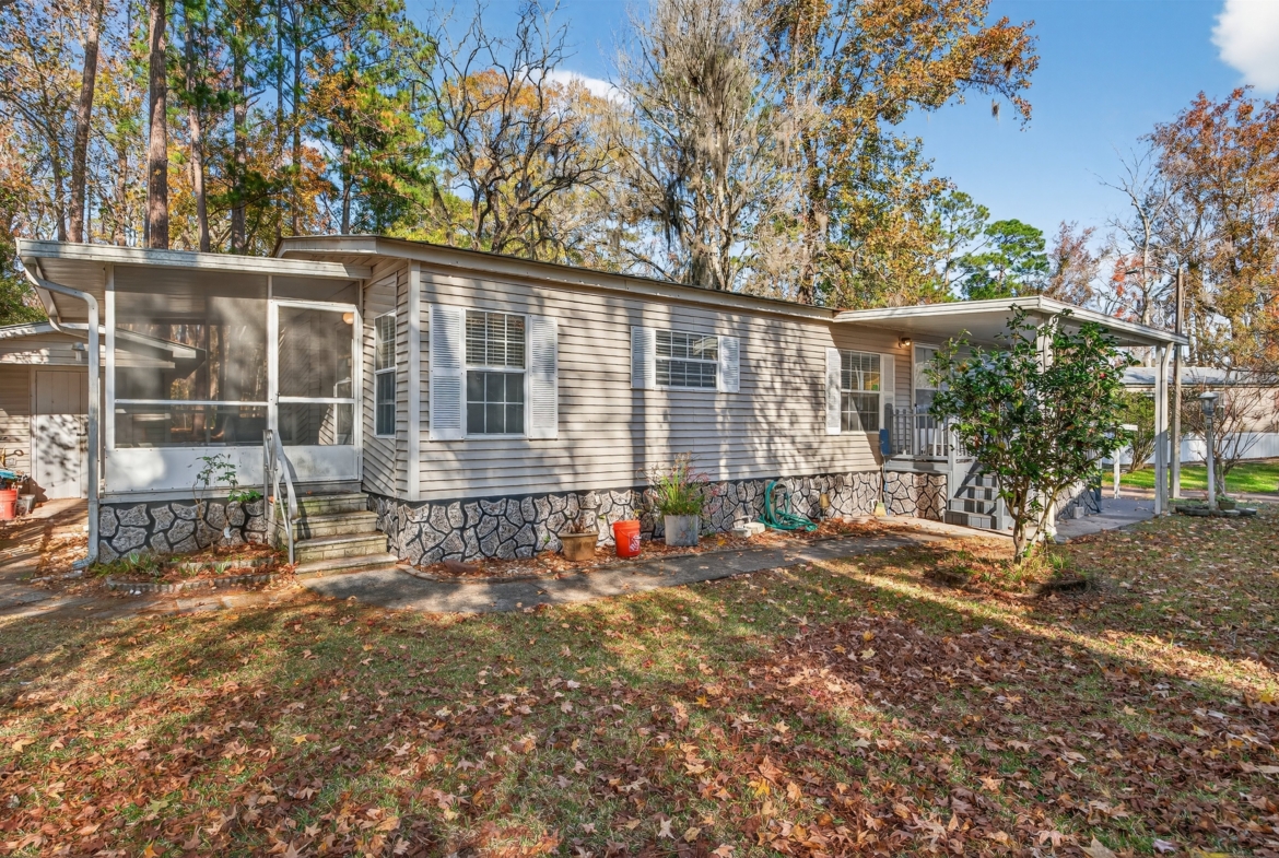 Situated on a large lot backing up to the wood line and McGirts Creek, the setting is peaceful and ideal for anyone who enjoys gardening, outdoor living, or simply a little breathing room. The exterior features a carport, covered front deck, screened-in back porch, detached back patio, and a storage shed, making this property as functional as it is inviting. The home also has a metal roof and K-Rock skirting for durability and longevity… amazing!