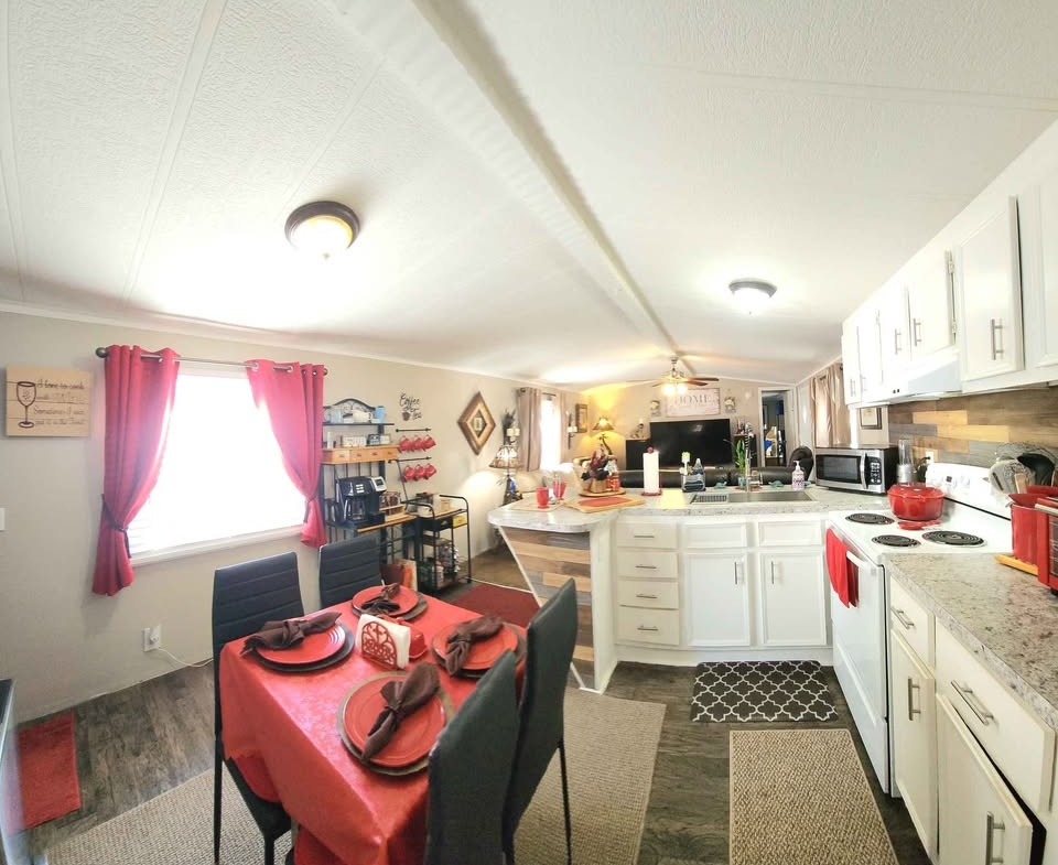 🍂Bright kitchen with updated cabinets, backsplash, and open flow to dining & living room.